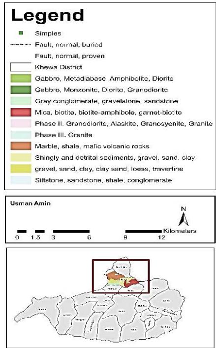 This methodical investigation’s primary goal is to ascertain the geological, geochemical, mineralogical, and mechanical characteristics of the calcite marble found in Khewa. The article includes all important information about Khewa calcite marble, including its quality, constituent minerals, related elements, and other data. The procedures employed for the precise investigation and evaluation of the mine’s characteristics include manipulative field observation, laboratory examination of Khewa calcite marble, and preliminary library studies concerning the research location. The calcite marble library research provided exact and accurate information about the location of the examined area’s geology, as well as information about its tectonics and magmatism. In order for the laboratory analysis to determine the true geology of the area under study, including adjacent rocks, and the chemical makeup of the calcite marble, laboratory examination is required. Mica schist is the neighboring rock to calcite marble (a metamorphic rocks).