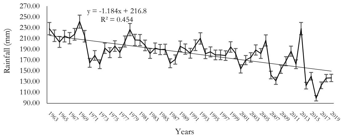 Figure 5: Inter-annual rainfall for Bamenda (1963-2019)