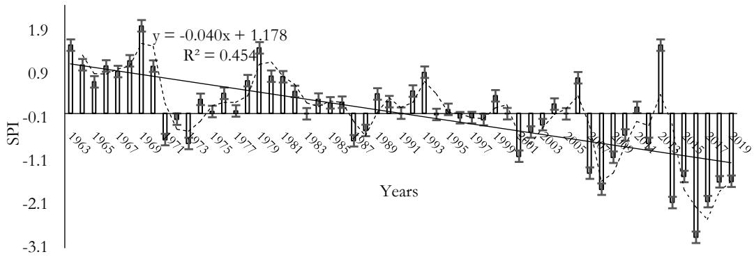 Figure 6: Inter-annual Standardized Precipitation Index for Bamenda (1963-2019)