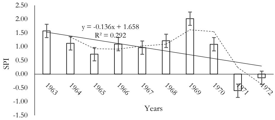 SPI trends. From 1963-1972, the SPI trend decreased above the average (Figure 7).