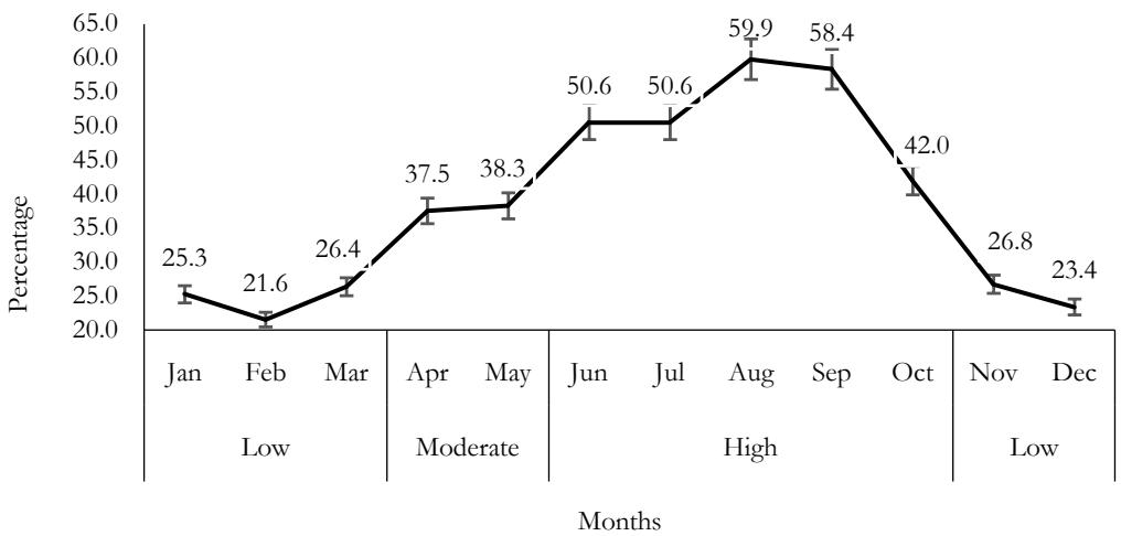 Rainfall in Bamenda increases from the onset of the wet season to a peak in July to September and gradually drops as the dry season sets in (Figure 4).