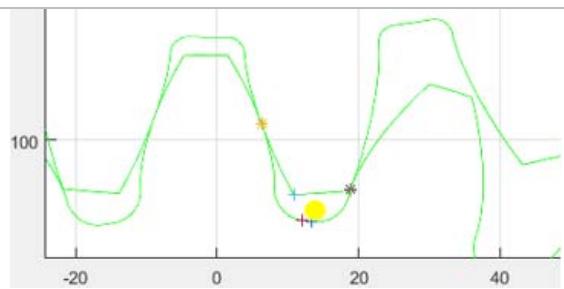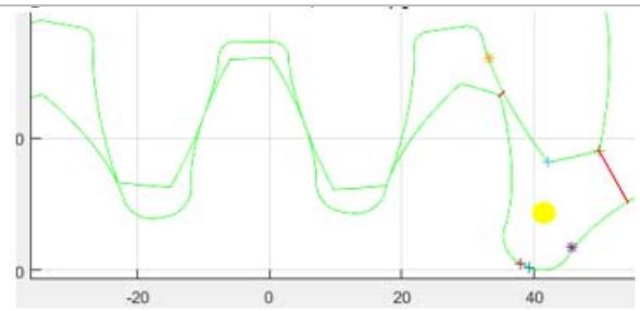 Figure 9 below is a detailed view of the half of the tooth profile taken from the simulation result for the specific case of gear 2 in table 1.