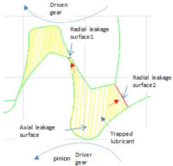 Figure 6: Radial and axial leakage Surfaces at a location where profiles are not in contact