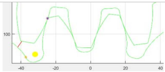 Figure 8 below is a detailed view of the half of the tooth profile taken from the simulation result for the specific case of gear 1 in table 1.