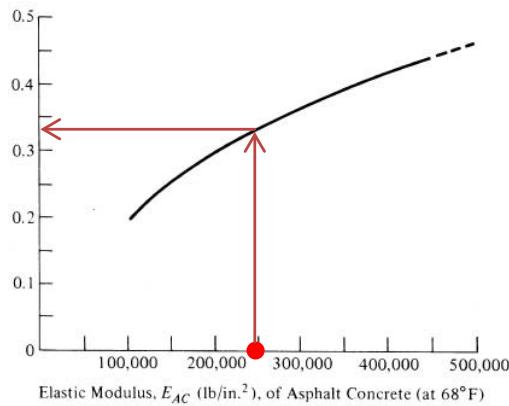 Resilient modulus of asphalt concrete at $68^{\circ}\mathrm{F} = 450,000\mathrm{lb / in}^{2}$