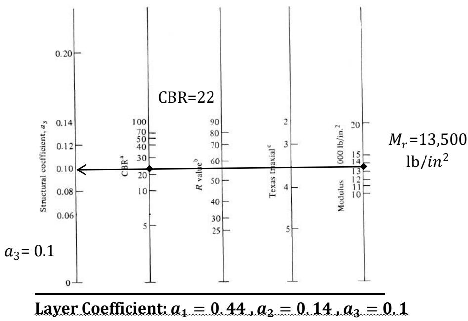 The quality of the material used is determined in terms of the layer coefficient (a3), which is used to convert the actual thickness of the subbase to an equivalent Structure Number (SN).
