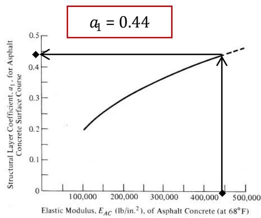 The structural layer coefficient (a1) relates to a dense graded asphalt concrete surface with its resilient modulus at $68^{\circ}\mathrm{F}$.