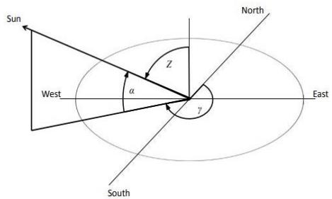 - $\alpha$ (sun elevation angle) and $\gamma$ (sun azimuth angle) are as defined in appendix 1.