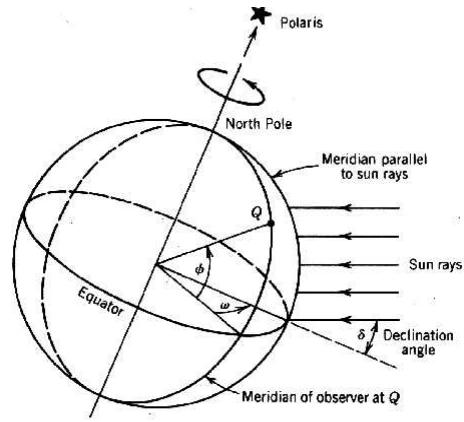 - $\alpha = \alpha_{2}$ (the highest elevation angle) at local noon.