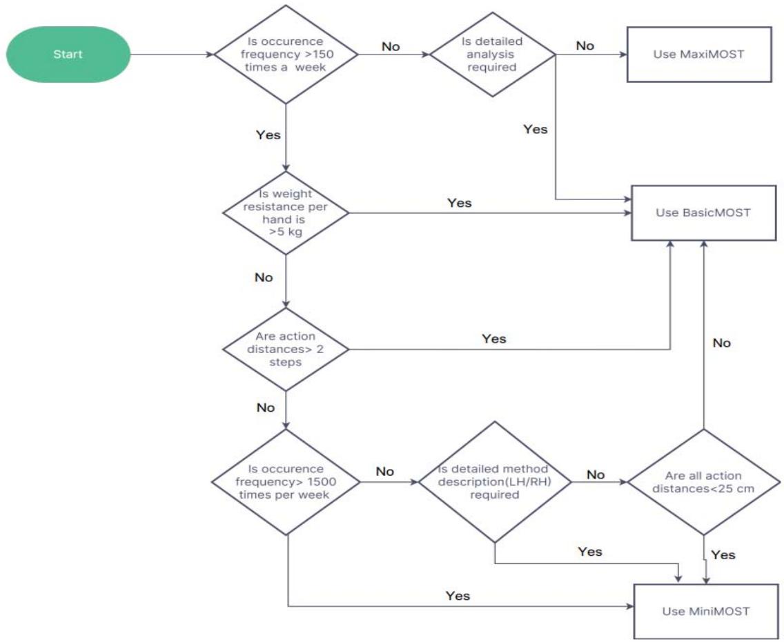 In order to make decision of MOST family to be selected for the analysis of the operation, we need to undergo a quantitative and qualitative analysis of the operation. Below (Fig. 1) is a flowchart prepared to undergo the analysis involved of the operation involved in the MOST study.