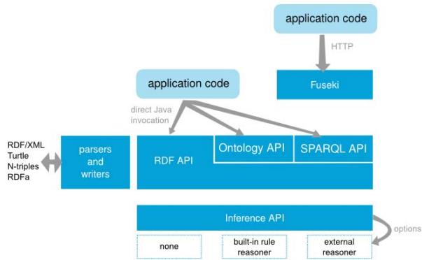 When using Protégé as a tool in the construction of the Ontology and apache Jena as a server, it is recommended to use Java technology to insert, update and read data since they are written in this language and could generate compatibility errors or make the software development even more complex.