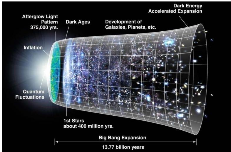 As explained earlier about the Big Bang Theory, Astronomer look to the beginning of the universe as a single point, then expanded and stretched to grow as it is right now, and formed galaxies, Planets, stars, asteroids, and other matters.