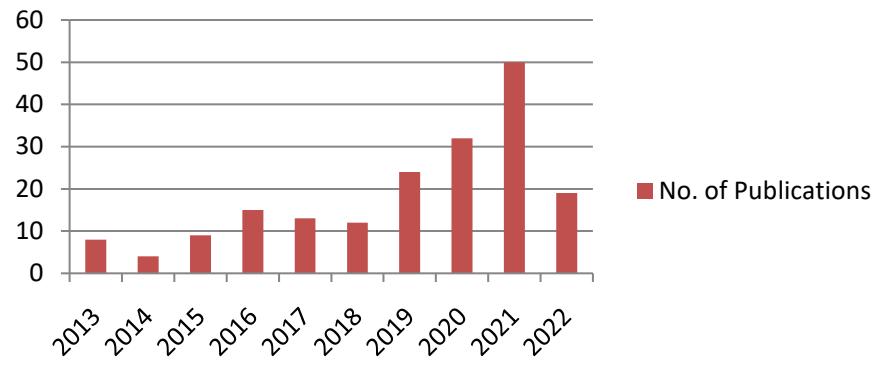 Figure 2 illustrates year-wise research publication and citation on Social Entrepreneurship from 2013-2022. The research publishing trend indicates a significantly increasing from 2014 till 2021 with little fluctuation where the boom in publication on Social Entrepreneurship has been observed from 2013 to 2022. The most research productive year on Social