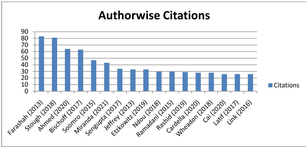 Farashah (2013) affiliated with UmeA¥ University, Sweden emerged as a top author with 83 total citations.