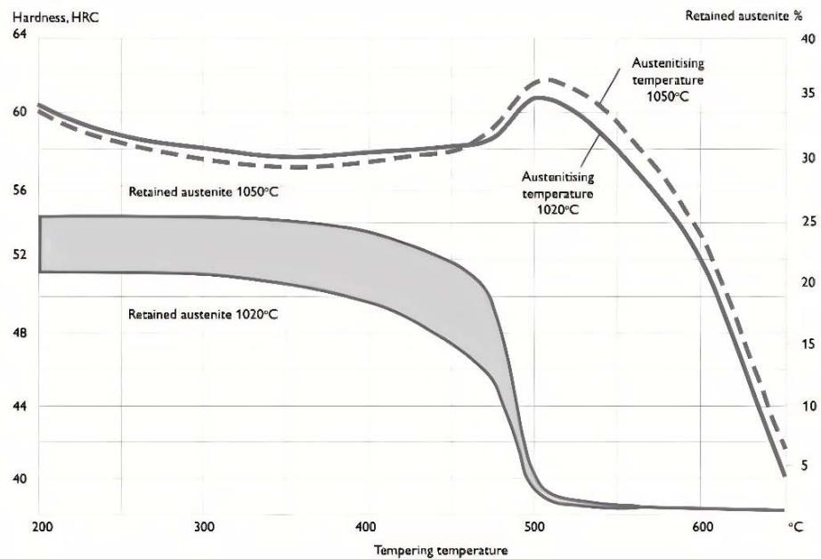 Austenitising temperature $1025^{\circ}\mathrm{C}$. Holding time 30 minutes.