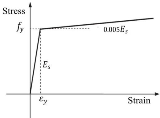 In this research, the hollow square columns was modeled by the elastic-plastic model, as shown in Figure 2. The Poisson's ratio was considered to be 0.3. In addition, the plastic zone is with a linear hardening and the hardening modulus was considered $0.005E_{s}$