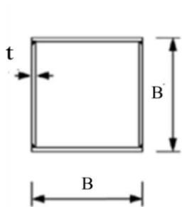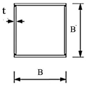 Table 5: The dimensions of the unstiffened section, where the ratio $(B / t) = 12.5$ and 50