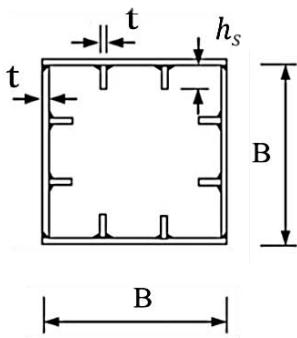 A comparison experiment test study between unstiffened and stiffened stainless steel hollow columns was presented by Dabaon et al. [3]. The ratio of length-to-depth $(L / B)$ was fixed at a value of 3, but the depth-to-thickness ratio fluctuated from 60 to 90. For stiffened and unstiffened sections, the ultimate strengths of this columns, buckling modes, and axial load verses axial strain are compared.