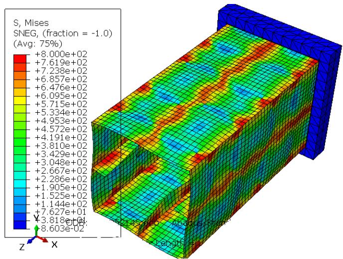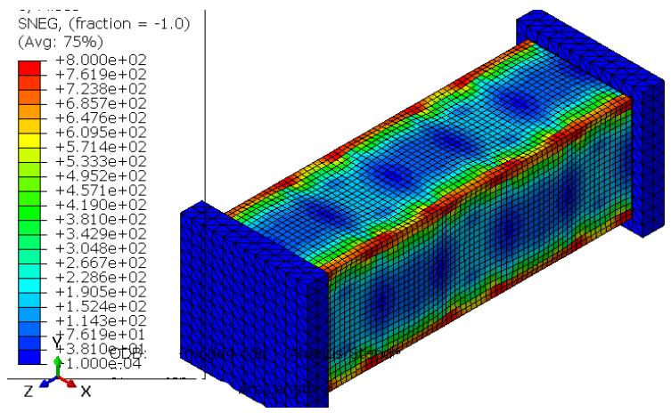 The boundary condition as described previously and shown in Figure 5. For square hollow columns in these investigation, the initial local imperfection's value has been set to $0.01B$. In addition, this study used the distribution of residual stress shown in Figure 1. The columns in this study were modeled using 4-node shell elements (S4R) and the approximate global size of the mesh is about $12\mathrm{mm}$.