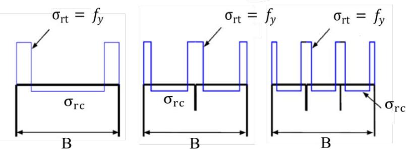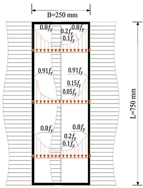 In this paper, according to the experimental test result by Somodi and Kovesdi [4], To estimate the compressive residual stresses, two models of the residual stress are developed. Equations (1) and (2) were developed to provide the best approximation to the average compressive residual stresses that were measured. The "predefined field" for the initial stress option is available in FE software to model residual stress. The typical residual stress distribution of the steel square hollow stiffened and unstiffened sections are shown in Figure 1.