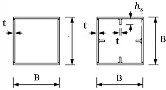 Many investigations on the behavior of square hollow steel columns have been conducted in the recent decades. The stiffened and unstiffened square hollow columns (SHC), rectangular hollow columns (RHC) were investigated by Tao et al. [2]. The stiffened square hollow columns has only two longitudinal stiffeners welded to its longer sides as opposed to the four longitudinal stiffeners that were once present on each side of the stiffened square hollow columns (SHC). One of the most important considerations was the ratio $(\mathrm{B} / \mathrm{t})$. The tubes also come with or without stiffeners. Comparing the ultimate strength of the experimental test results are presented.