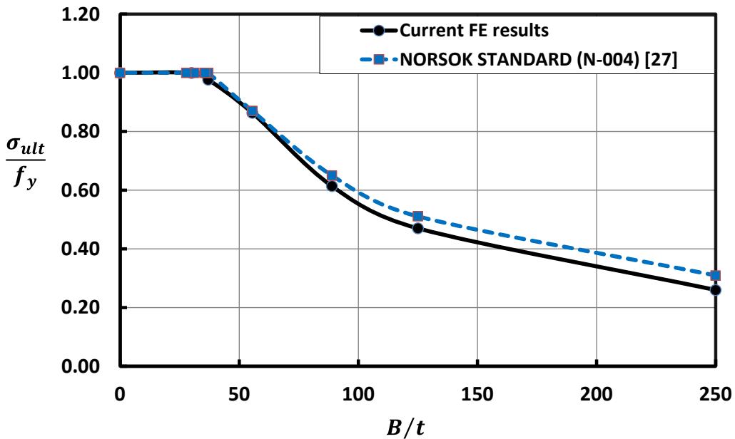 6%. While for stiffened columns, the average variation is around $6\%$ between current FE models and the effective width method by Norsok. Thus, it can be concluded that the proposed method can accurately predict the ultimate load capacity of short columns.