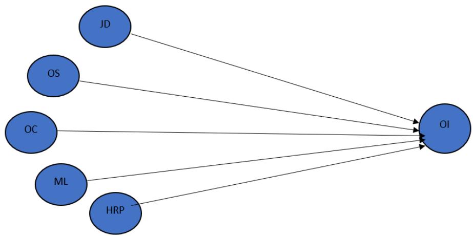 Note: HRP: Human Resource Planning; JD: Job Design; OC: Organizational Culture; ML: Managerial Leadership; OS: Organizational Structure.