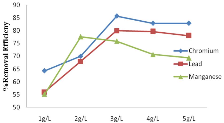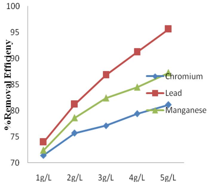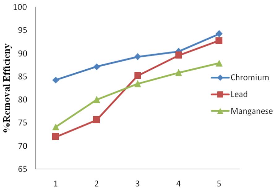 Figure 9: Alum percentage removal efficiency for Cr, Pb and Mn