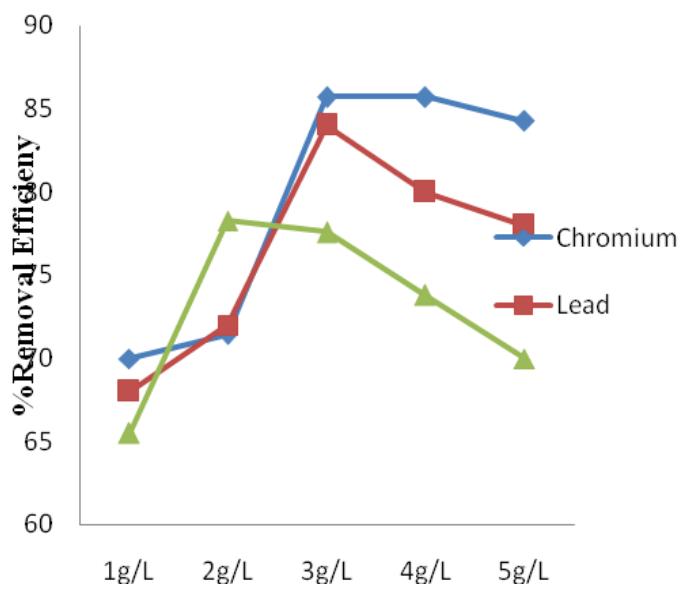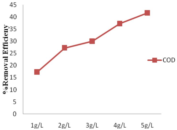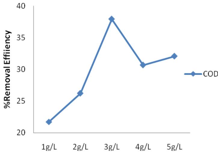 To observe the effect of coagulant dose, the experimental runs were conducted at different doses (1, 2, 3, 4 and $5\mathrm{g / L}$ ). The percentage removal efficiency at each dose was compared. Depending on the coagulants, the optimal dose varied with the various coagulants used.