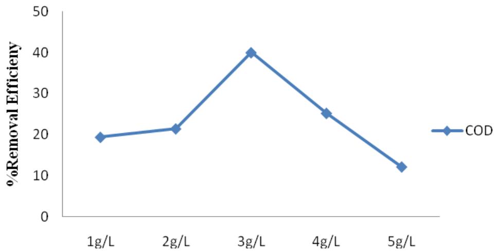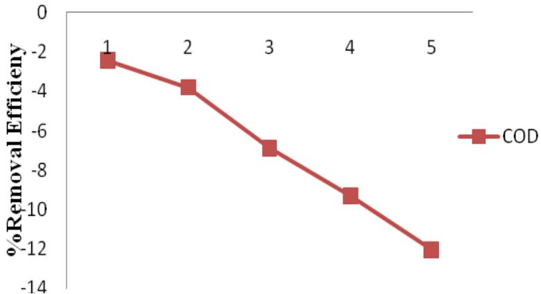 Figure 10: Alum percentage removal efficiency for COD
