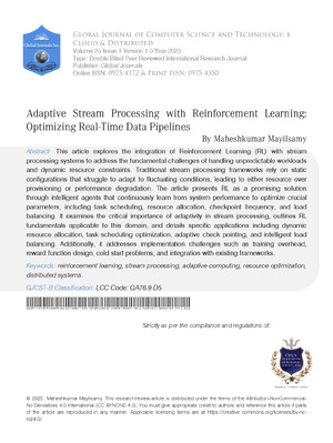 Maheshkumar Mayilsamy (2025). Adaptive Stream Processing with Reinforcement Learning: Optimizing Real-Time Data Pipelines.