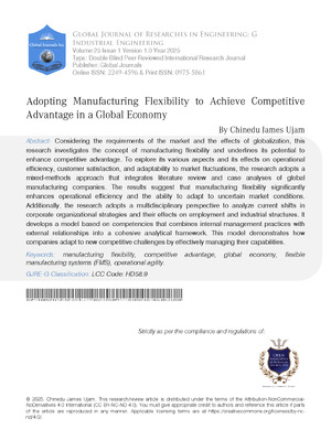 Chinedu James Ujam. 2026. \u201cAdopting Manufacturing Flexibility to Achieve Competitive Advantage in a Global Economy\u201d. Global Journal of Research in Engineering - G: Industrial Engineering GJRE-G Volume 25 (GJRE Volume 25 Issue G1): .