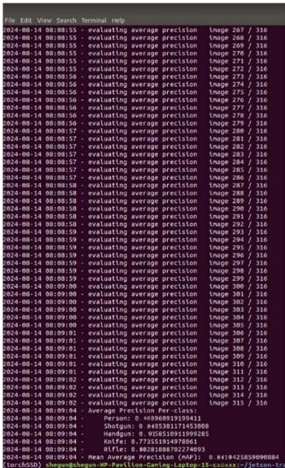 This model achieved high average precision (AP) scores for objects like "Handgun" (91.58%) and "Shotgun" (84.85%), However, other studies suggested that models like YOLOv4, which were fine-tuned for specific tasks and utilized additional enhancements, outperform our SSD in precision metrics, particularly for smaller objects [19]
