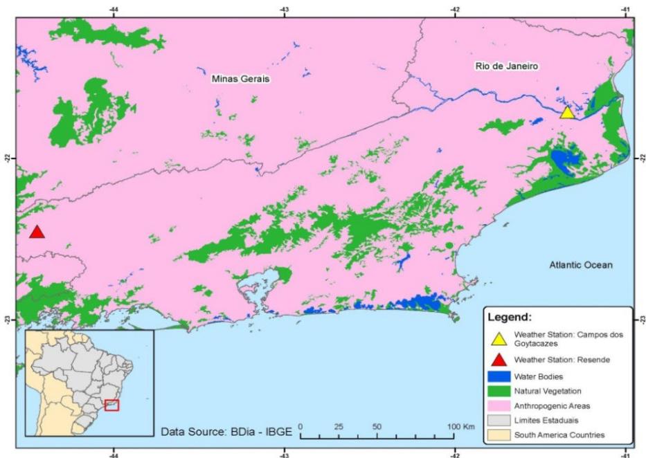From a meteorological perspective, this period was marked by a drier spell compared to the climatology of the area located further northeast of the region (Campos dos Goytacazes station). In the western region (Resende station), the average precipitation closely adhered to the climatological precipitation pattern.