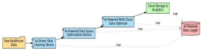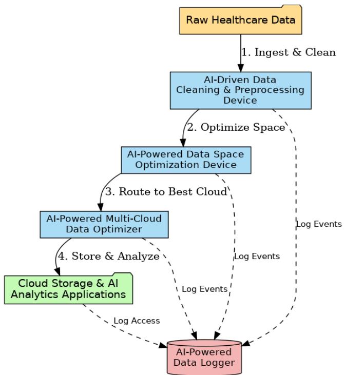 Artificial intelligence data systems significantly improve cloud computing services for the healthcare sector because they can automate workflow processes [2]. Our artificial intelligence system brings forth four new devices intended for medical and research data: the Data Cleaning Device, the Data Optimization Device, the Multi-Cloud Optimizer, and the Data Logger, as shown in