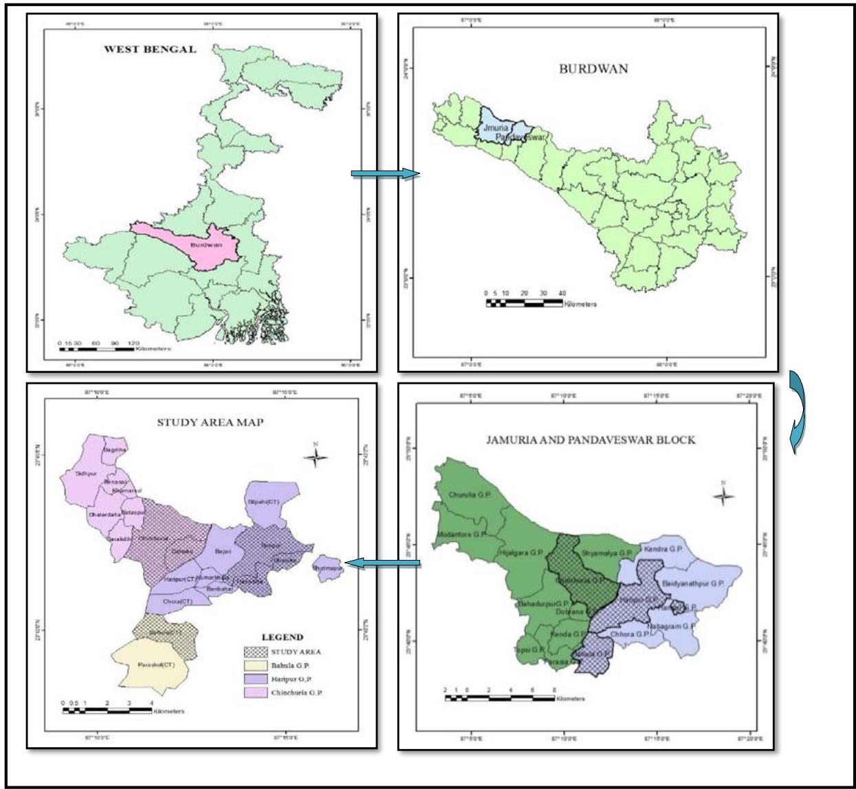 The areas taken for present study are West Bengal which includes districts namely West Burdwan, Bankura and Purulia which have the highest concentration of several industries in West Bengal, India. Both a descriptive and analytical approach is proposed for the study. As a tool an interview schedule is prepared to collect primary information from the people. Other distractions like Birbhum and Hooghly have been visited for study. The research primarily based on extensive firsthand observation and interviews with individuals impacted by land acquisition. Demographic and economic surveys are carried out among all households using structured and open-ended questionnaires. Qualitative data on the emotions and attitudes of those affected by the acquisition are gathered through repeated conversations over an extended period. The hardships and economic struggles faced by individual family members are examined through the case study approach. In addition to the field study mentioned above, previously published and unpublished materials from various sources are incorporated into this research.