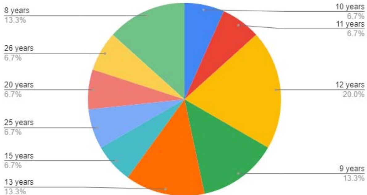 The marital status and duration of time spent in the USA are important. However, according to the Figure 3 of the interviewees time spent in the USA range from 8 years to26 years, $6\%$ of the participants have lived in the USA for about 26 years as the highest participants lived in the USA for a period between they have gain a lot of experience.