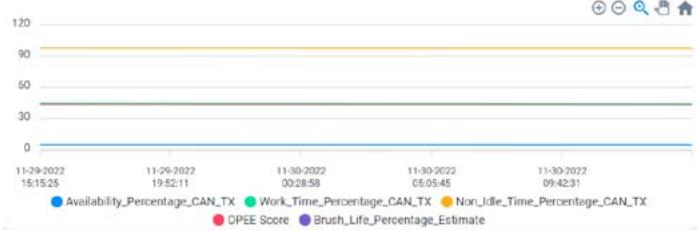 Faehn did not use the Tan Delta sensor, but rather applied the OpEE® score with a different quality indicator on a machine designed to sweep debris off streets, (see Figure 1). This proof of concept (PoC) made some key changes to the OpEE® formula, which provided both leading and lagging indicators, (see Figure 3). As a leading indicator, the OpEE® score would provide performance productivity up to the last operating event, allowing managers to determine how well each machine had performed over time because the score was cumulative. Faehn (2022) modified the score to allow for a rolling 24-hour update. This modification provided day-to-day data, or a lagging indicator, to determine how the machine was trending over time.