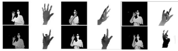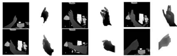 (b) Fig. 1: Depth images captured by Intel Real Sense SR300 [Intel] and cropped hand areas. (a) images captured in third-person viewpoints; (b) images captured in first-person (ego-centric) viewpoints.