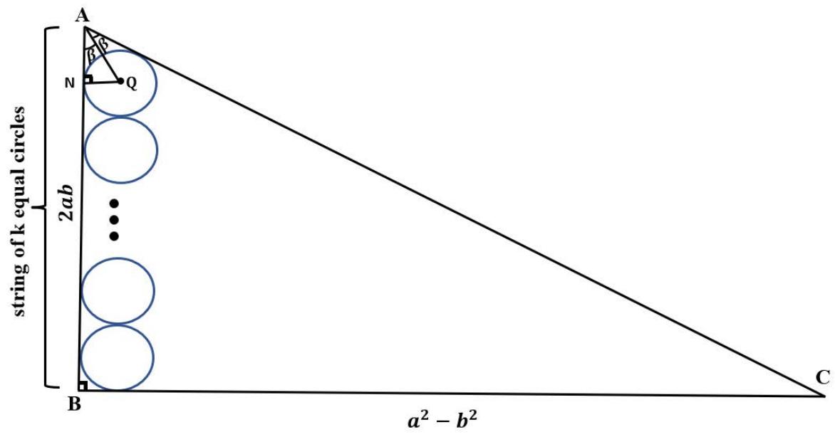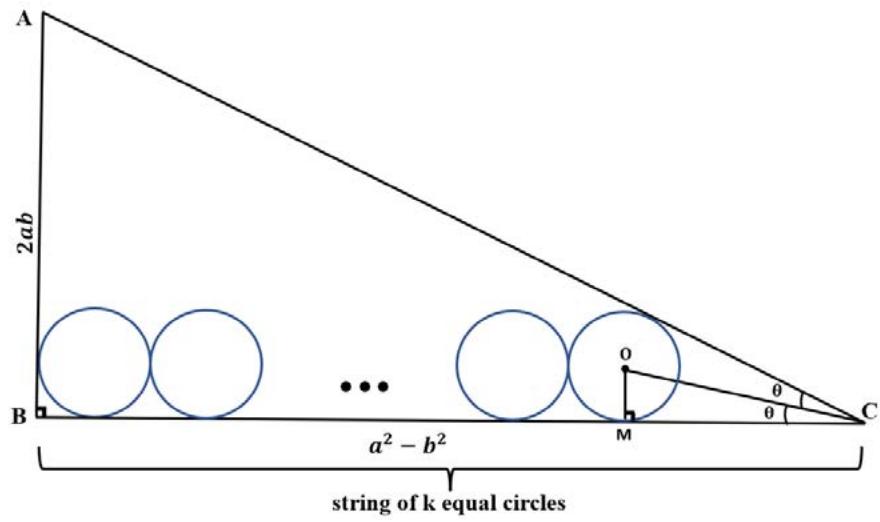 If in any Pythagorean triangle a string of a finite number (say, $\mathbf{k}$ ) of equal circles, inside the triangle, are so taken that i. each of the k circles touches a given side (other than the hypotenuse) ii. each of the (k-2) non-extreme circles also touch the two neighbouring circles. iii. the extreme two circles touch the nearest other side also.