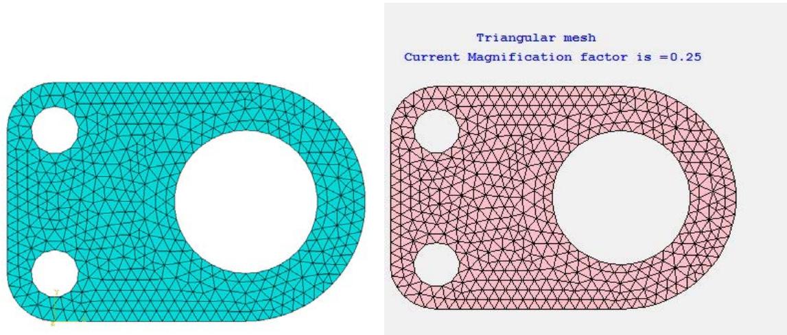 Figure 11: Triangular mesh for a bracket plate section via using the a) ABAQUS software; b) developed mesh viewer program