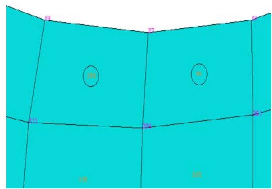 By employing the developed program designed for plane stress analysis, an output file has been generated for the bracket plate section, which includes stress values at the four integration points and displacement data at the nodal points. Figure 9 clearly illustrates that the maximum von-Mises stresses occur within two specific elements: element no. 194, comprising nodes 27, 89, 204, and 231, and element no. 56, composed of nodes 27, 88, 203, and 204. Comparison of $\sigma_{misses}$, $\sigma_x$, $\sigma_y$, and $\tau_{xy}$ for element no. 194 and 56 at the four integration points, and $U_x$ and $U_y$ for element no. 194 and 56 at their four nodal points obtained from the developed program and the analysis are shown in Table 1 to Table 6.