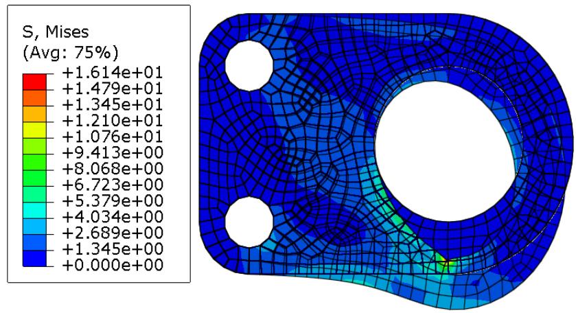 Figure 8: FEM analysis of bracket plate in terms of $\sigma_{mises}$