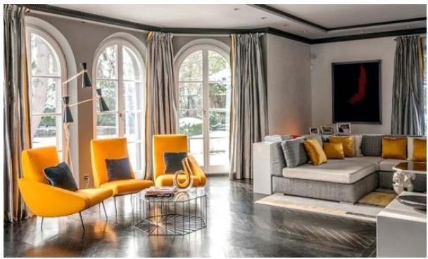 Of course, the results of identifying the dominant colour scheme in the palette of different countries are pretty conditional and depend on many factors, one of which is the personal preferences of the designer and the customer, their temperament, their psychological characteristics. For example, the individual preferences and temperament of German designers David Rizzo and Peter Bachberg brought rather bright colour accents to traditionally achromatic modern German interiors: David Rizzo's is green, and Peter Bachberg's is yellow (Figures 15, 16).