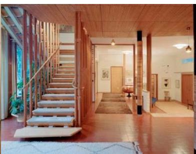 Alvar Aalto, grey concrete and various shades of natural wood. The main colours are white, grey, brown with terracotta or green accents (Figures 7, 8, 9, 10).