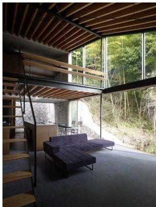 One of the most important features of Japanese residential interiors is unity with nature: panoramic windows, plastic natural forms (Fig. 6).