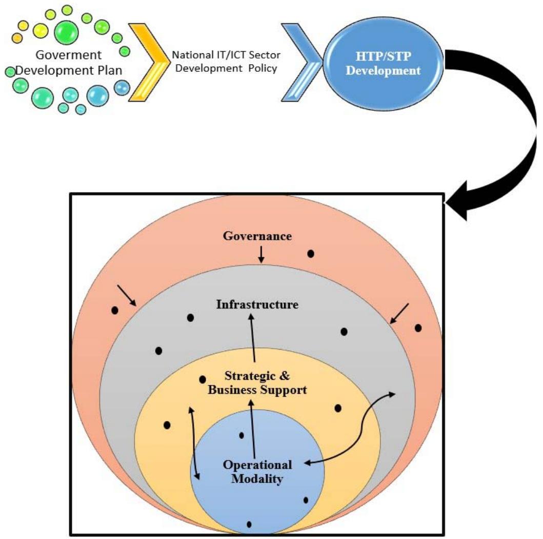 It been seen that, most of the initiatives are infrastructure focused rather than strategy based. After infrastructural initiatives, government is taking strong actions to establish business strategy. Many initiatives are seen around the country to support innovation and entrepreneurship. Government also trying to support new idea and products. But to make these steps and HTP/STP successful targeting successful institutionalization, operation modality shall be the most important variable. From the study the following process is proposed for the development of HTP/STP in Bangladesh [11].