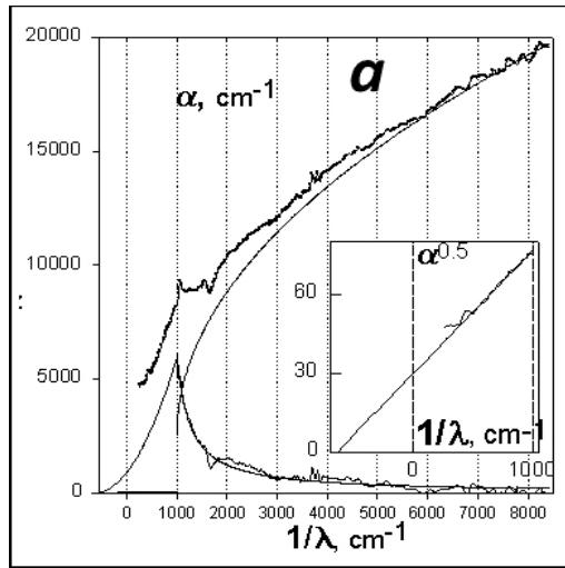 Fig. 7: Characteristic lattice oscillator of cubic boron nitride (a) and the spectrum of its absorption coefficient (b)