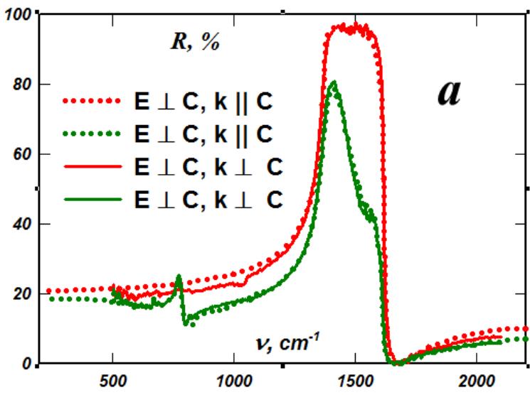 Fig. 3: Lattice oscillators in the polarization reflection spectra of rhombohedral (red curves) and hexagon al (green curves) boron nitride