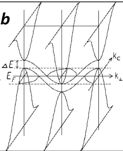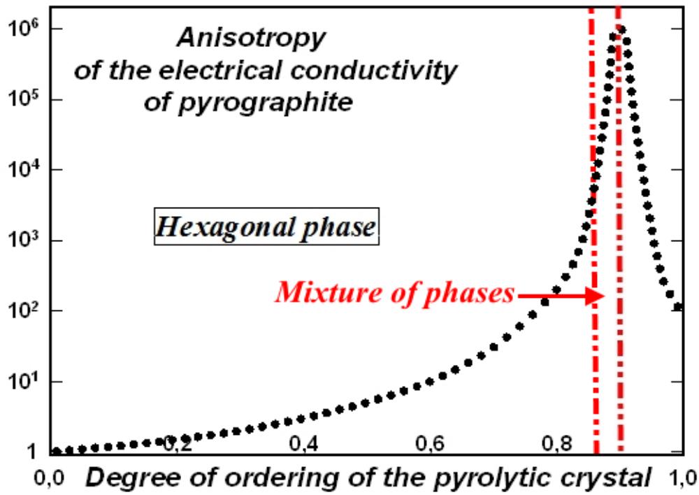 Fig. 1: Reduction of the anisotropy of electrical conductivity of graphite pyrocrystals during the transition from the hexagonal phase to the rhombohedral phase due to an increase in electrical conductivity across the monatomic layers of graphite